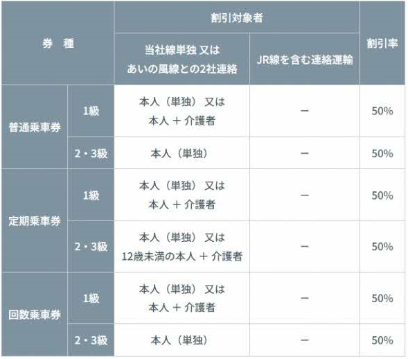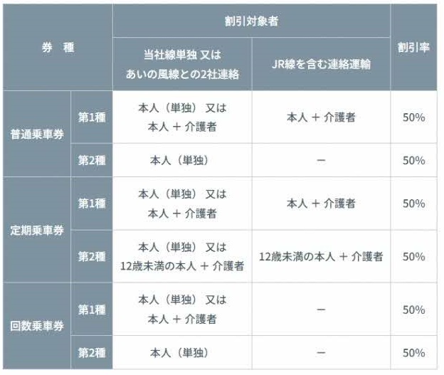 身体障害者割引乗車券・知的障害者割引乗車券
