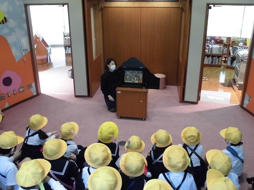 おはなしの部屋で、図書館の使い方をお勉強と絵本の読み聞かせの後は、お友達と好きな本を選んで読書を楽しみました。これからたくさん図書館に来てくださいね。