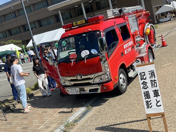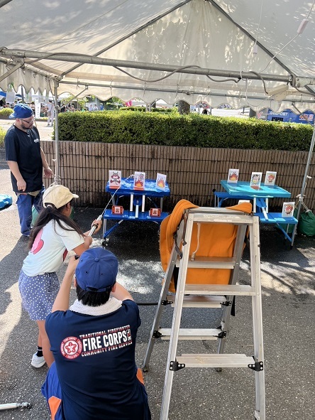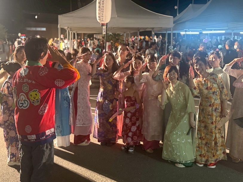 令和7年8月23日(土曜日)第42回辰口まつりにおいて、能美市消防団辰口分団が子供放水体験、消防車と記念撮影、女性分団が踊りの夕べに参加しました。