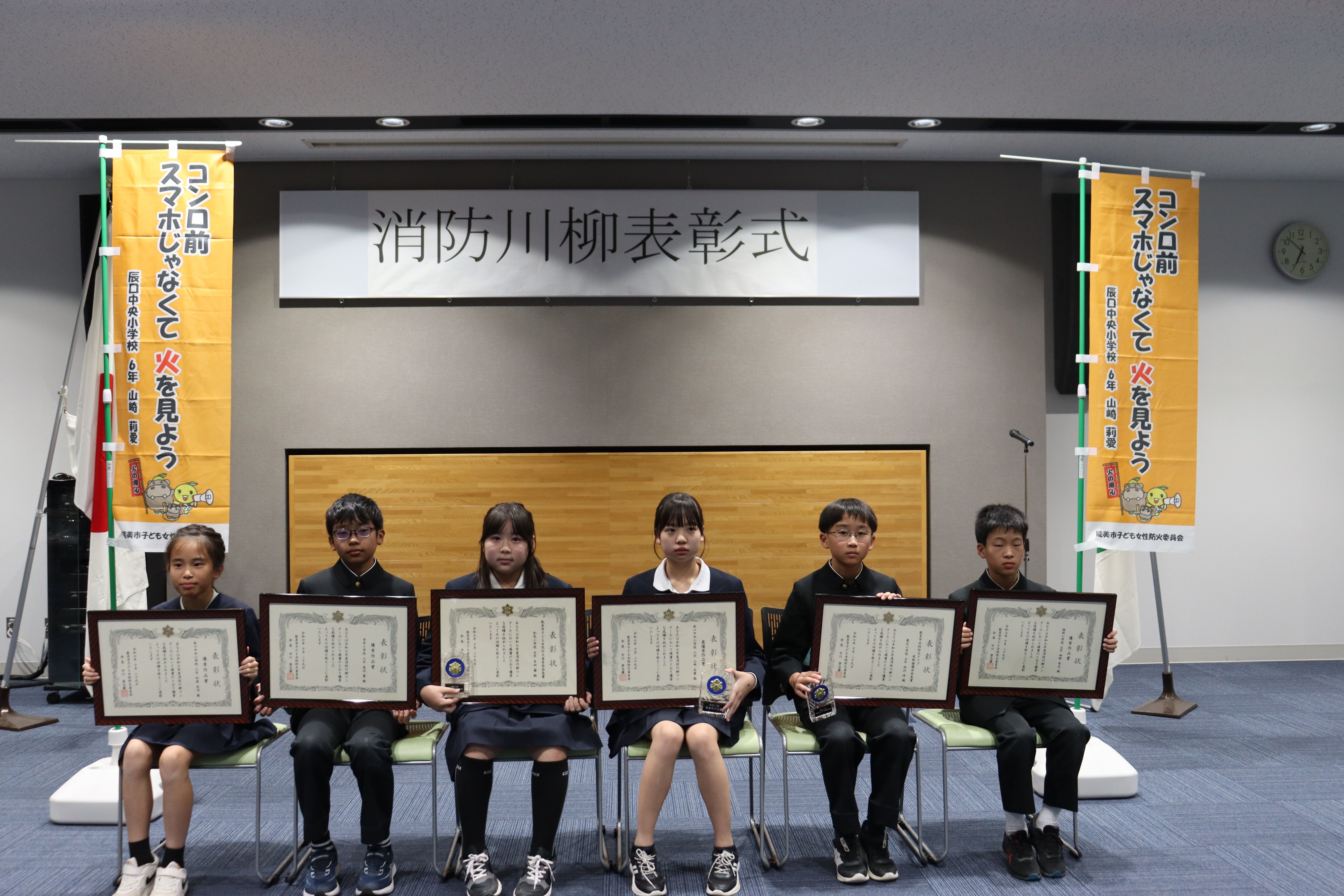 住宅防火をテーマに、市内の小学5,6年生を対象に消防川柳の作品を募集したところ、多数の応募をいただき、その作品の中から6点の表彰を行いました。