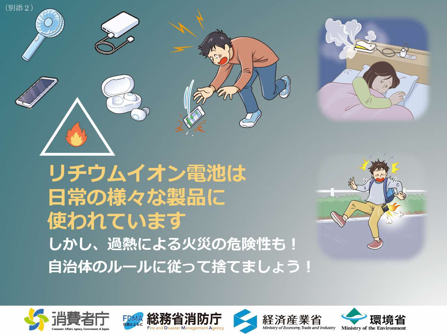 また、リチウムイオン電池使用製品を他のゴミと混ぜて廃棄することが、ごみ収集車やごみ処理施設での火災の原因になっていることがあり、問題となっています。